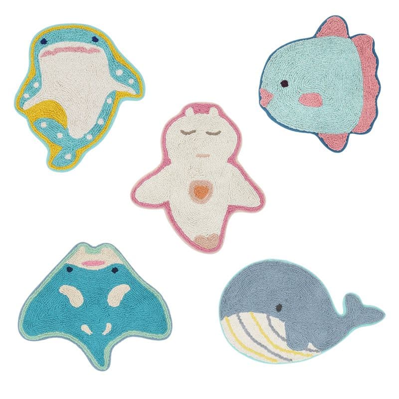 ◆商品名稱:【日本Tomo Corporation】海底動物腳踏墊(5種動物可選) 海天使/鯨鯊/翻車魚/鬼蝠魟/鯨魚 地墊 腳踏墊