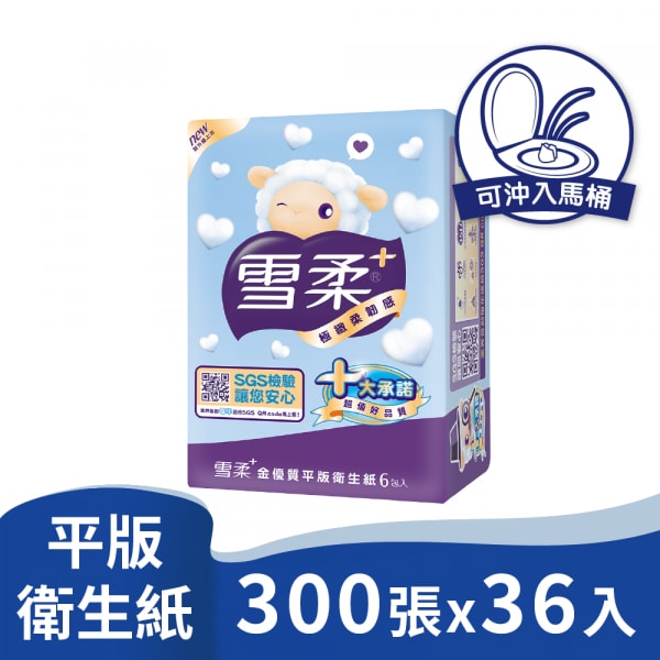 雪柔 平版衛生紙300張x6包x6串/箱 共36包