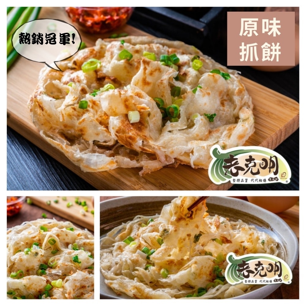 起團開徵食尚玩家莎莎推薦的桃園【老克明】蔥油餅。 煎熟後餅皮是薄帶點脆,