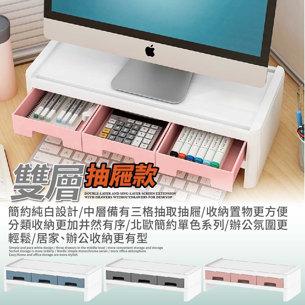 ●品名:桌上型螢幕置物架-雙層抽屜款