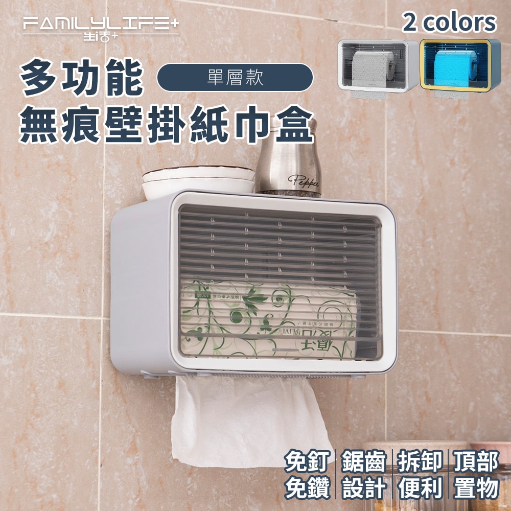 ●品名:多功能無痕壁掛紙巾盒-單層款