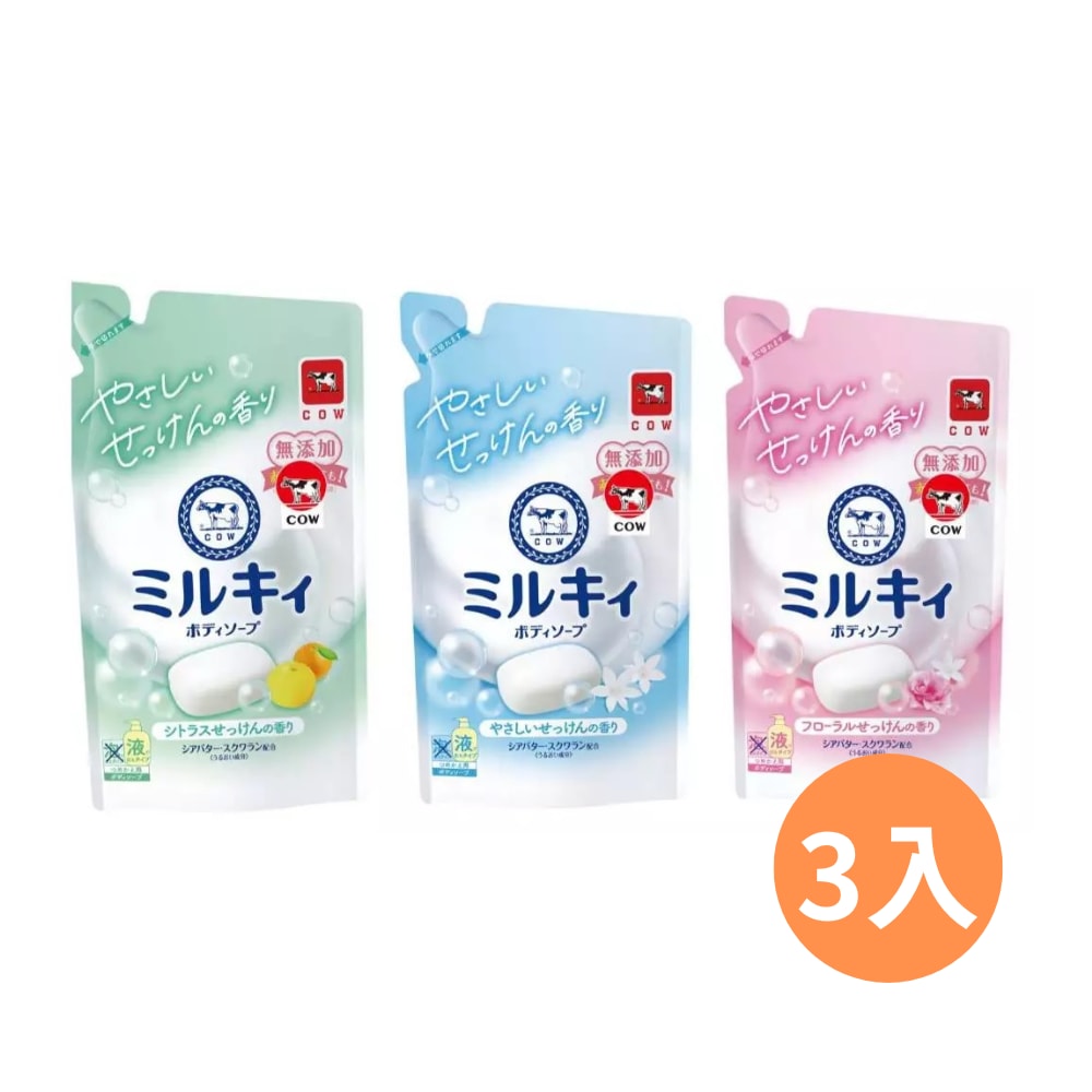 【日本 COW STYLE 牛乳石鹼】COW 牛乳精華沐浴乳360ml 補充包*3包