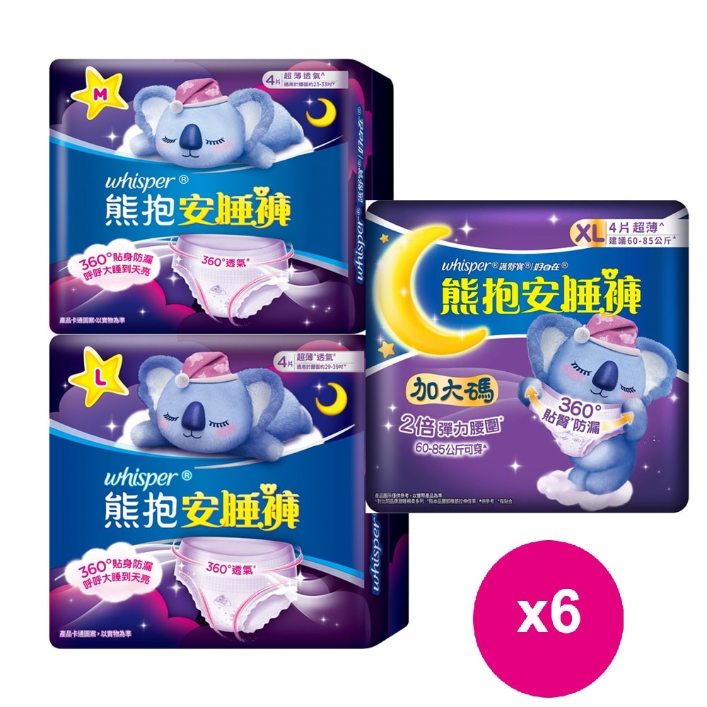 【Whisper 好自在】熊抱安睡褲 夜用生理褲衛生棉 *6包