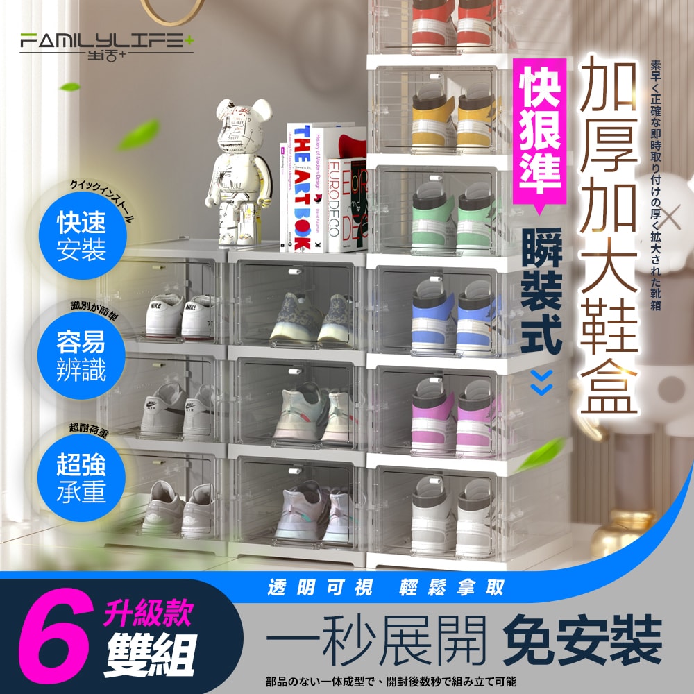 ●品名:快狠準瞬裝式加厚加大鞋盒-6雙組