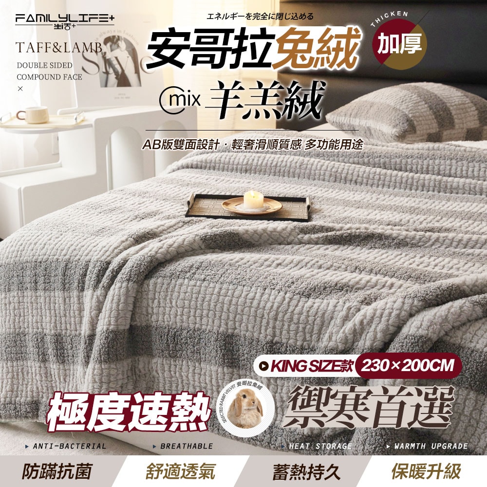 【FL 生活+】 輕奢極柔安哥拉兔絨x羊羔絨雙面複合特重保暖被毯-KING SIZE款-230*200公分