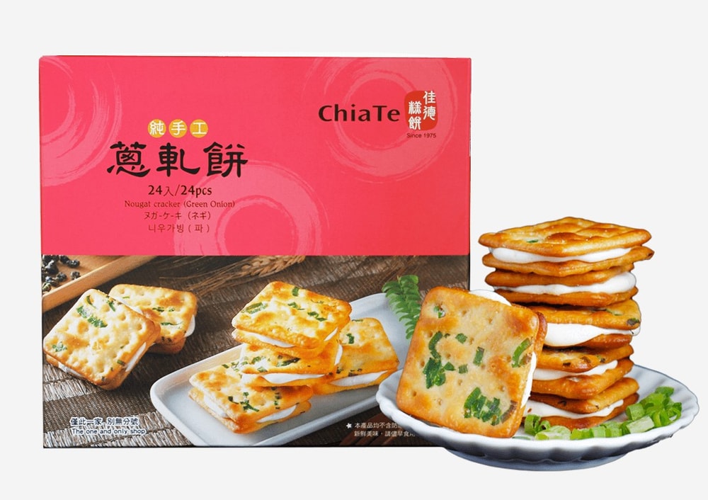 香酥的蘇打蔥餅加上柔軟而不黏牙的牛軋糖,鹹甜交錯,家庭聚會最佳點心,老少咸宜~~! 2017年佳德春節強推的新產品!每日限量生產,要買要快喔!