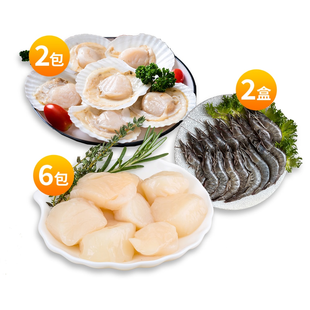 1.商品名稱 : 【海鮮主義】日本生食級干貝6包_加贈白蝦兩盒230g+半殼扇貝2包組