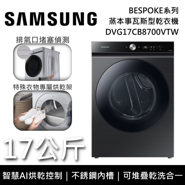 【Samsung 三星】 DVG17CB8700VTW 17公斤 蒸本事瓦斯型乾衣機 曜石黑 天然氣 含基本安裝