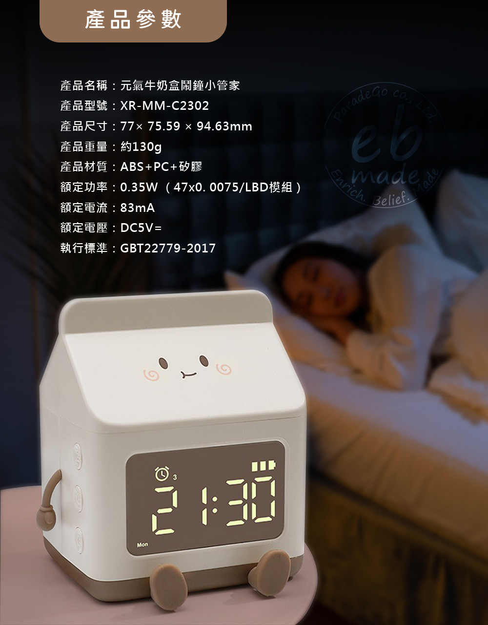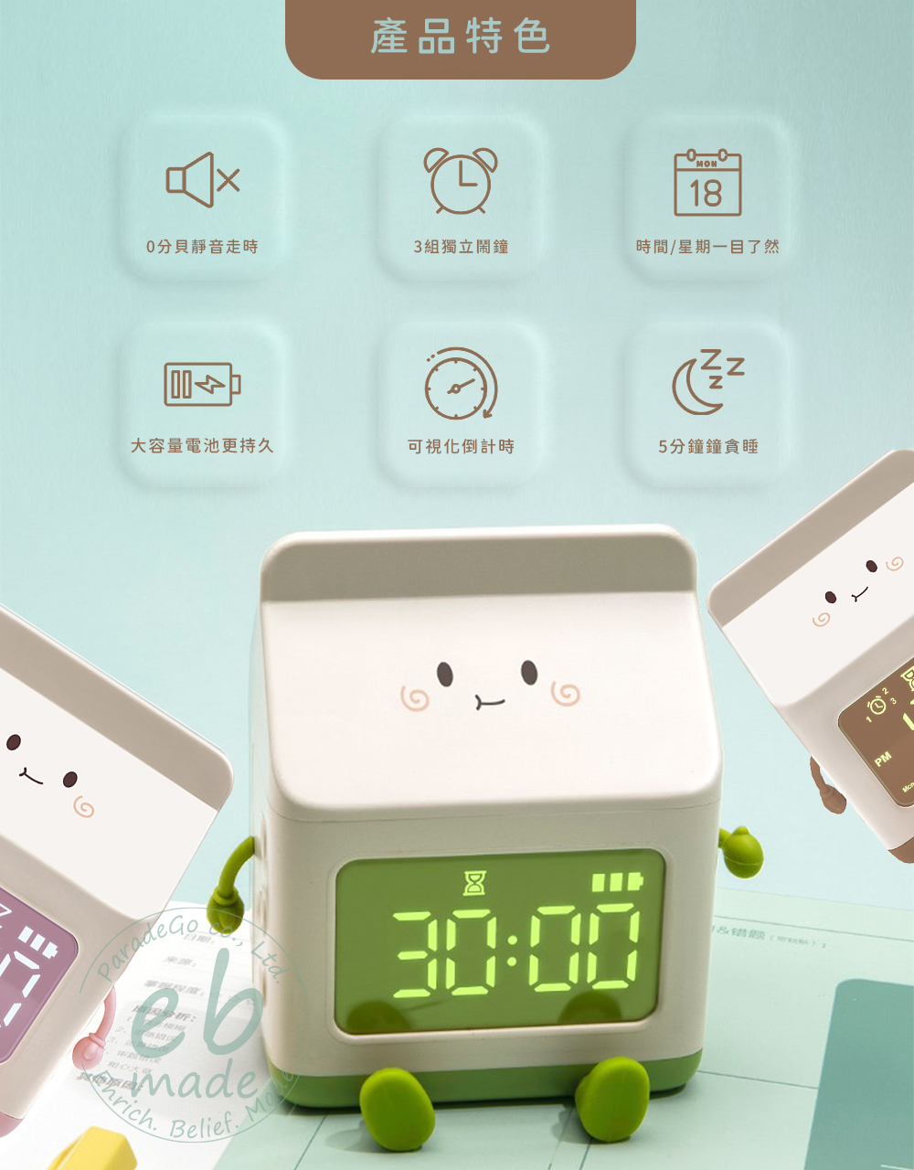 名稱:E.B. MADE MK-C 元氣滿滿牛奶盒鬧鐘小管家
