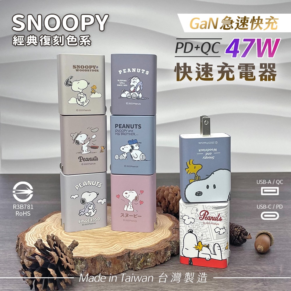 【SNOOPY 史努比】 鳳梨酥系列 47W GaN氮化鎵 PD+QC 急速充電器