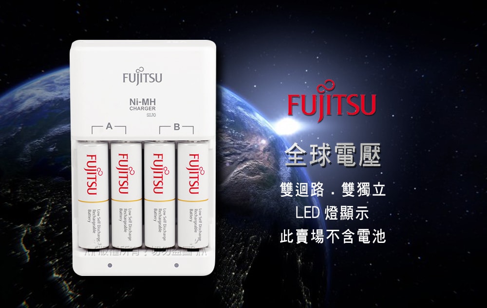 內容物:Fujitsu智能4槽低自放鎳氫電池充電器(不含電池)