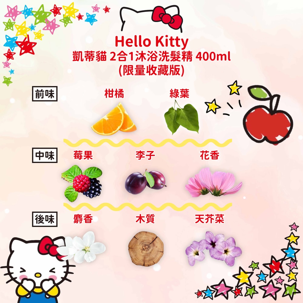 1.商品內容:Hello Kitty 凱蒂貓2合1沐浴洗髮精 400ml(限量收藏版)