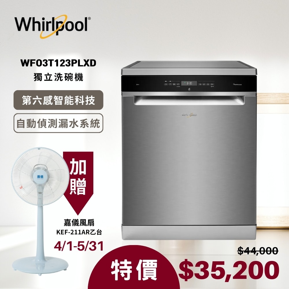 【Whirlpool 惠而浦】 14人份自動開門獨立洗碗機 WFO 3T123PLXD (含基本安裝)