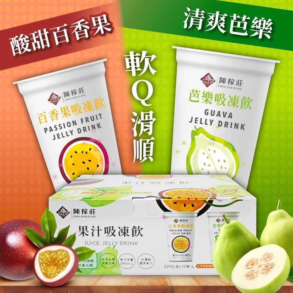 1.商品品名:【陳稼莊】果汁吸凍飲 百香果+芭樂 x4箱(220公克 X 12入)
