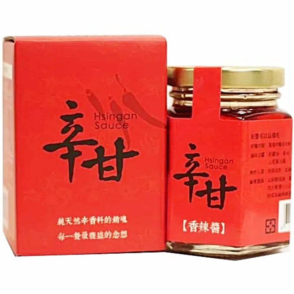 辛甘香辣醬嚴選新鮮辣椒、蒜頭、紅蔥頭,搭配八角、肉桂、荳蔻、丁香、小茴香、花椒等十多種純天然辛香料,以獨家特殊工法熬煮而成。