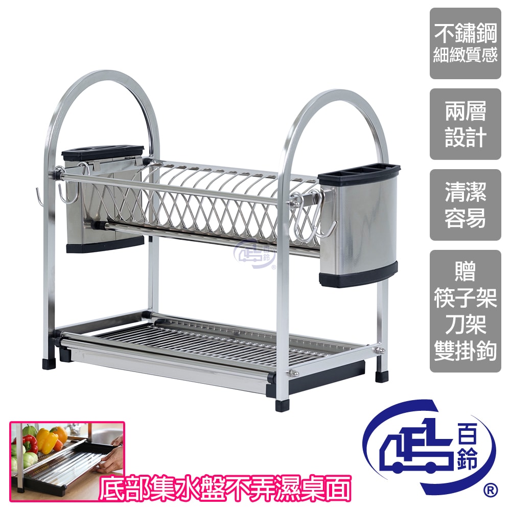 卡豪收不鏽鋼桌上型兩層瀝水架(含筷子架1入+刀架1入+雙掛勾2入)x1入/組