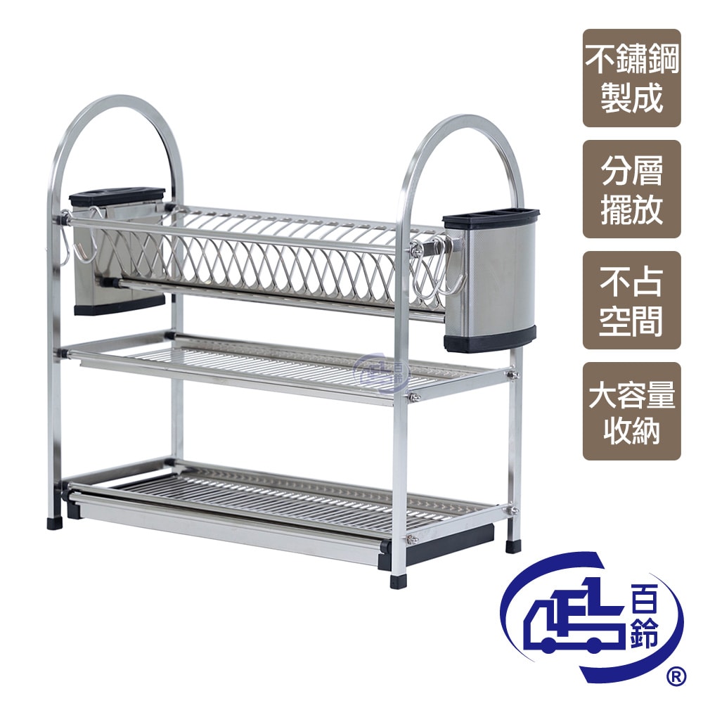 卡豪收不鏽鋼桌上型三層瀝水架(含筷子架1入+刀架1入+雙掛勾2入)x1入/組