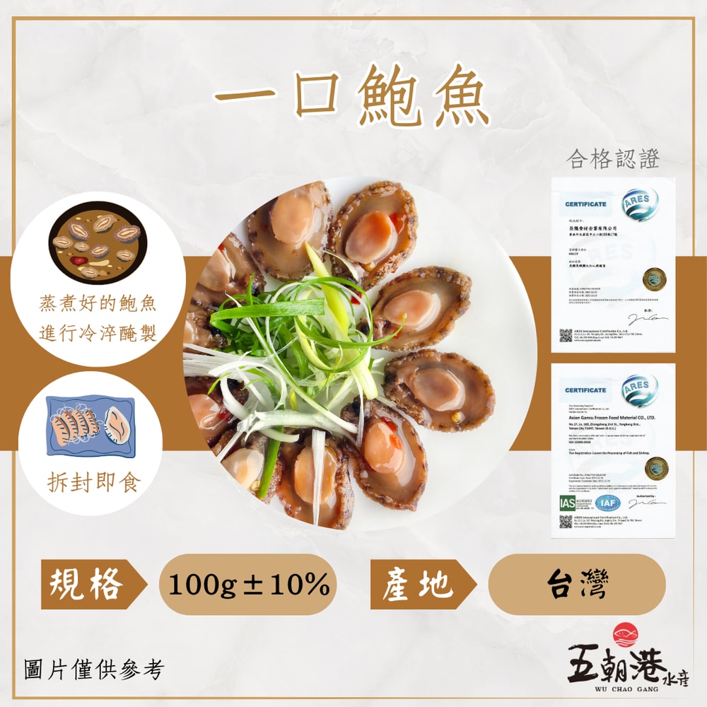 【五朝港水產】 銷魂一口鮑 (100克±10%/包) 3包組