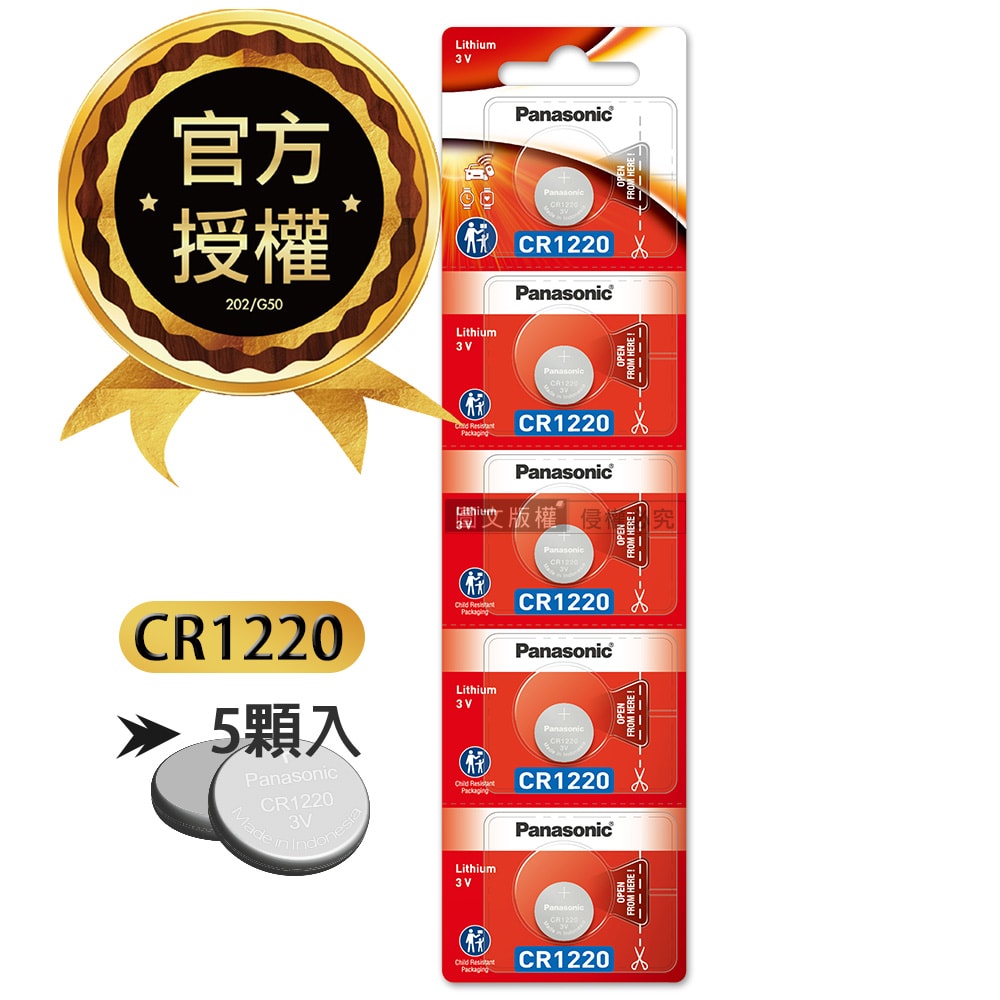 規格:Panasonic CR1220 3V鈕扣型電池 x 5顆入