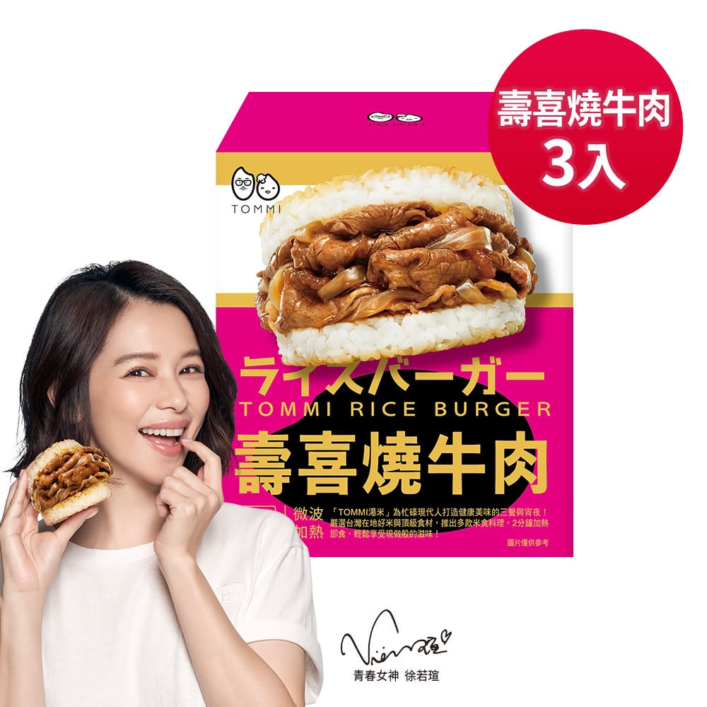 商品品名:TOMMI湯米-壽喜燒牛肉米漢堡(3入/盒)