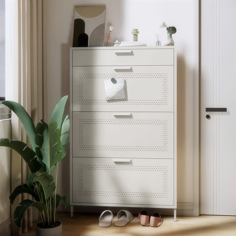 】 免組裝大容量鐵製三層拉門下掀鞋櫃(鞋櫃 鞋架)