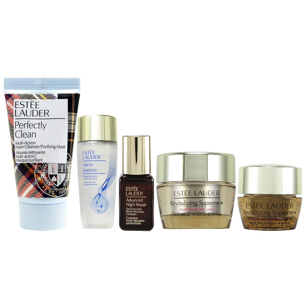 【Estee Lauder 雅詩蘭黛】 年輕煥采旅行組(細緻潔面乳30ml+微分子原生露30ml+特潤修護露7ml+年輕無敵膠原眼霜5ml+年輕無敵膠原霜15ml)