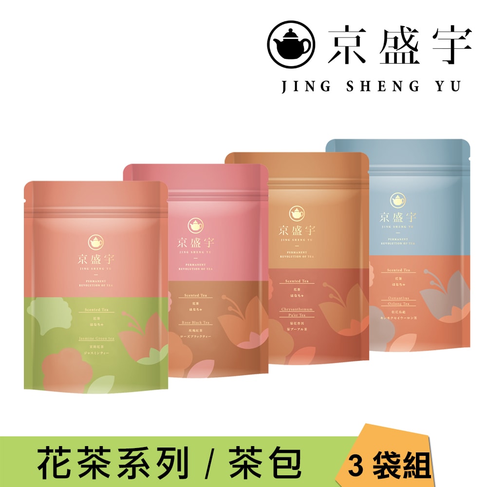 【Jing Sheng Yu 京盛宇】 花茶系列-超值3袋組 10入茶包x3袋(茉莉花茶/桂香烏龍/玫瑰紅茶/菊花普洱)