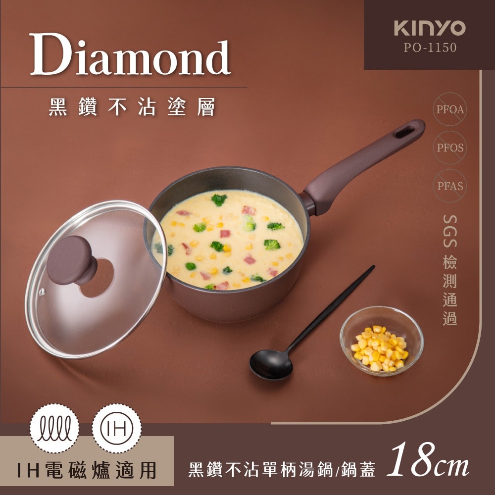 【商品名稱】KINYO 鑽石不沾長柄湯鍋 18cm PO-1150