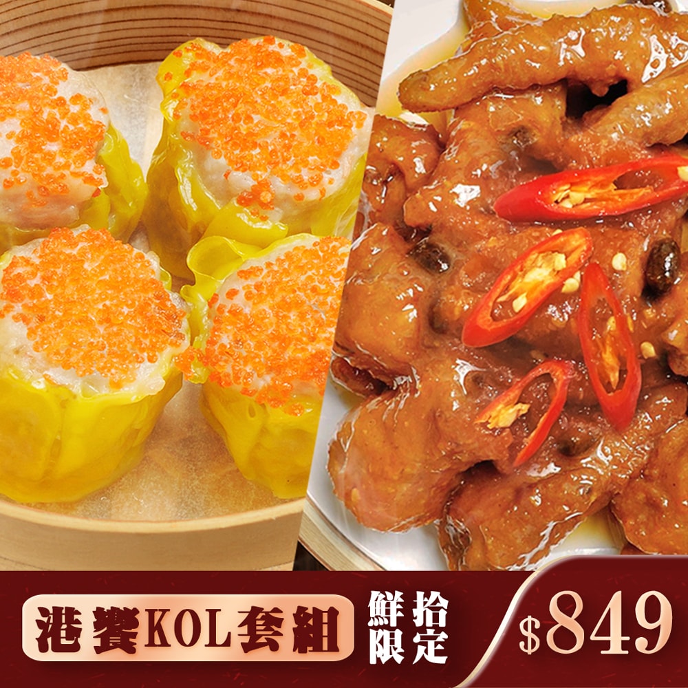 1.商品品名 : 【港饗茶樓】港式點心明星雙饗組(魚子鮮蝦燒賣+蠔油炆鳳爪)