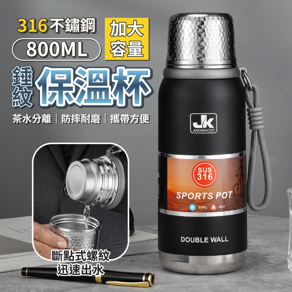 採用頂級316不鏽鋼,搭配獨特錘紋杯蓋,不僅堅固耐用,更顯品味。