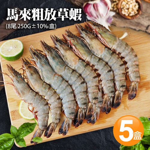 1.商品品名:馬來粗放草蝦8尾x5盒(250g/盒)