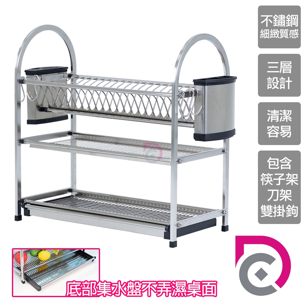 配件:不鏽鋼豪華厚實三層碗盤瀝水架x1組+筷子架x1個+刀架x1個+雙掛鉤x2個/組
