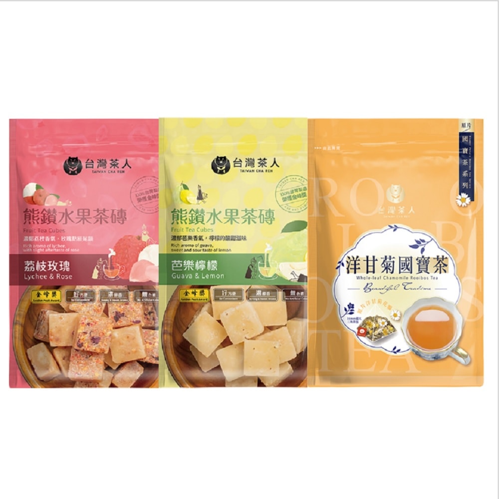 【台灣茶人】 茶人精選無咖啡因超值組-水果茶磚 +國寶茶( 荔枝玫瑰 / 芭樂檸檬 / 洋甘菊 ) 贈品牌木湯匙