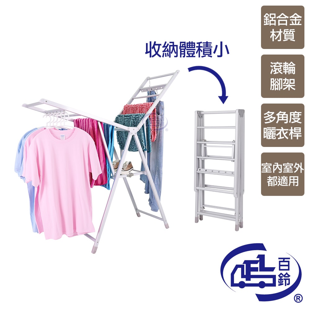 衣立不倒鋁合金翼型折疊帶輪曬衣架x1台/組