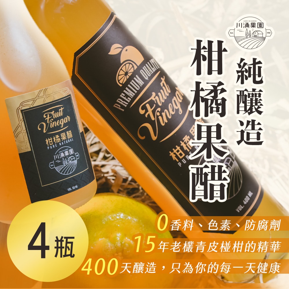 ◎商品名稱:【川涌果園】純釀造柑橘果醋 400ml x4瓶