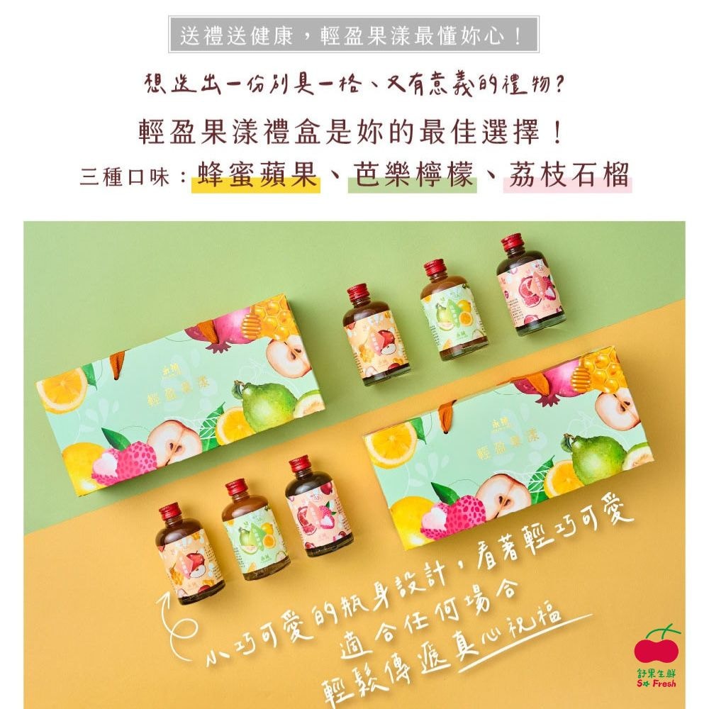 2.商品組合/規格:輕盈果漾天然果醋禮盒(3入/盒)