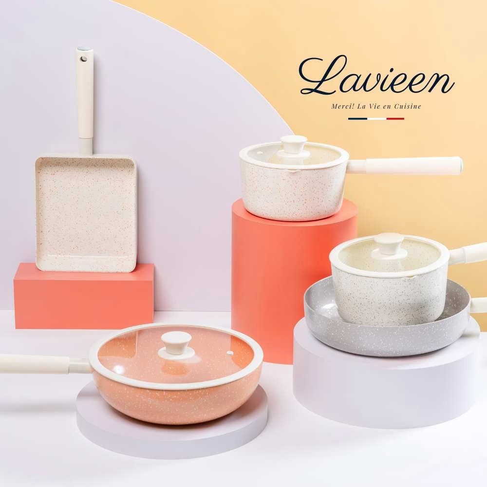 【商品名稱】Korea King La Vie En 法式優雅天然陶瓷不沾鍋 4鍋7件組