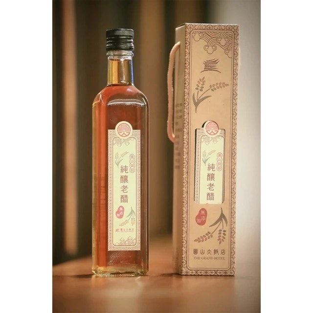 使用天然材料,以古法釀製醋品。以圓糯米熬煮,連同恆溫二十五度下生長的小麥草於老醋甕中發酵一年以上來增加其絕佳風味,是一瓶無香料、無防腐劑、無糖、無焦糖染色、無化學添加的陳年好醋