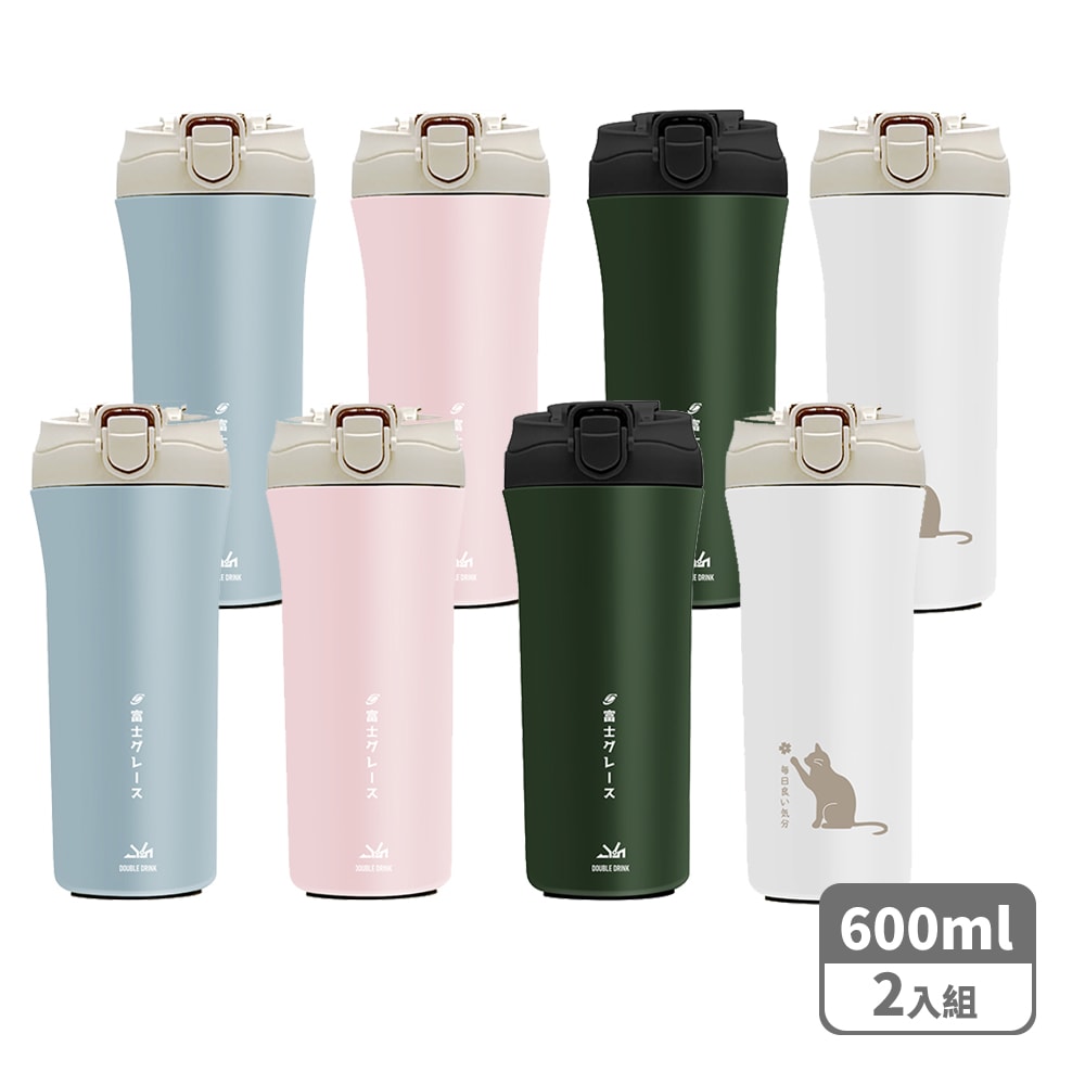 【FUJI-GRACE 日本富士雅麗】 雙吸管直飲雙飲杯組合|陶瓷噴層吸管直飲雙飲杯600ml (2入/組)