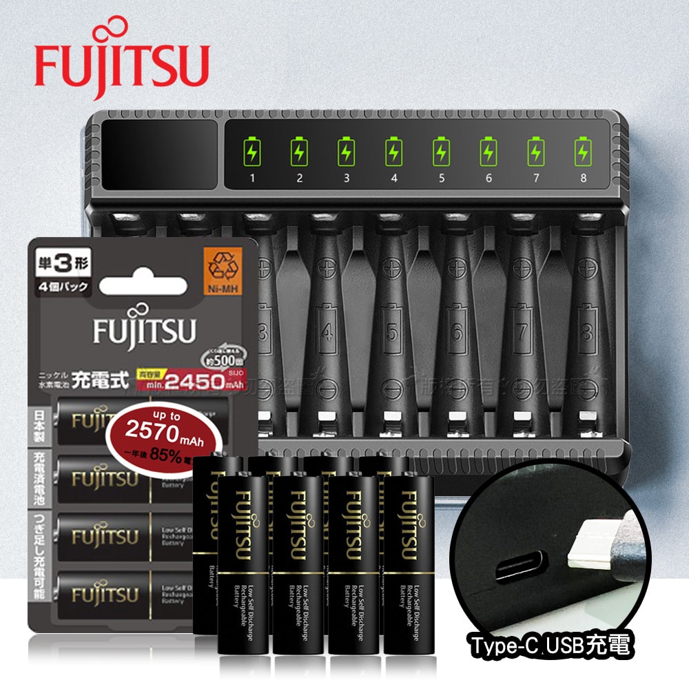 【FUJITSU 富士通】 低自放電3號2450mAh充電電池組(3號8入+智慧型八槽USB電池充電器+送電池盒)