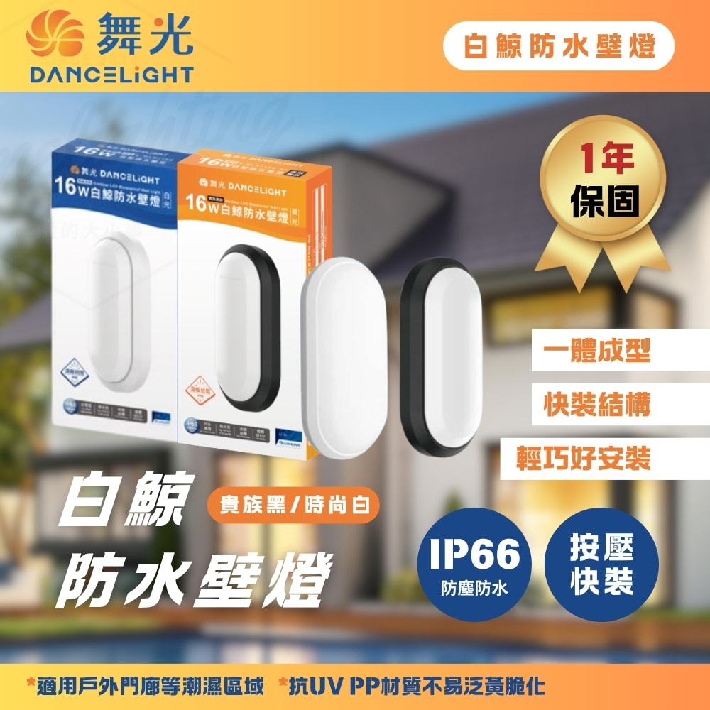 【DanceLight 舞光】 白鯨 LED 16W 防水壁燈 防水 壁燈 快速安裝 時尚白 貴族黑