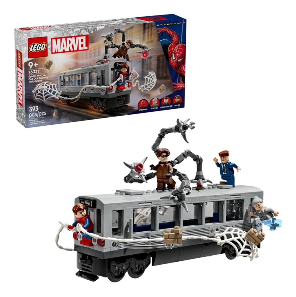 這款超級英雄地鐵列車拼砌盒組根據漫威影業電影《蜘蛛人 2》的經典場景設計,配有 4 隻人偶:J.喬納詹姆森、梅嬸、蜘蛛人和八爪博士。蜘蛛人人偶有可互換的頭部-蒙面與未蒙面-以及可固定到列車上的大型蛛網。八爪博士人偶有 4 隻裝有活動關節的觸手,其中 2 隻有「雷射光束」零件、2 隻有可固定到列車上的夾子。車頂可掀起,便於進入列車內部,裡面有空間讓人偶乘客乘坐。如要增添數位樂趣,拼砌者可使用直觀的 LEGO Builder 應用程式,放大、旋轉 3D 模型和追蹤進度。內含 393 個零件。