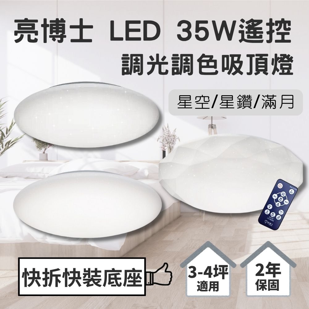 【Dr.Bright 亮博士】 LED 35W 遙控 吸頂燈 調光調色 壁切三段 快速安裝 星空 星鑽 滿月