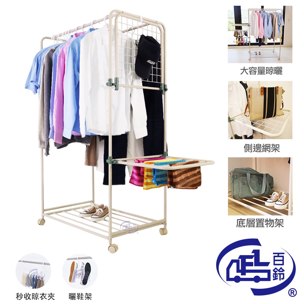 名稱:衣立不倒雙桿側展多功能曬衣架
