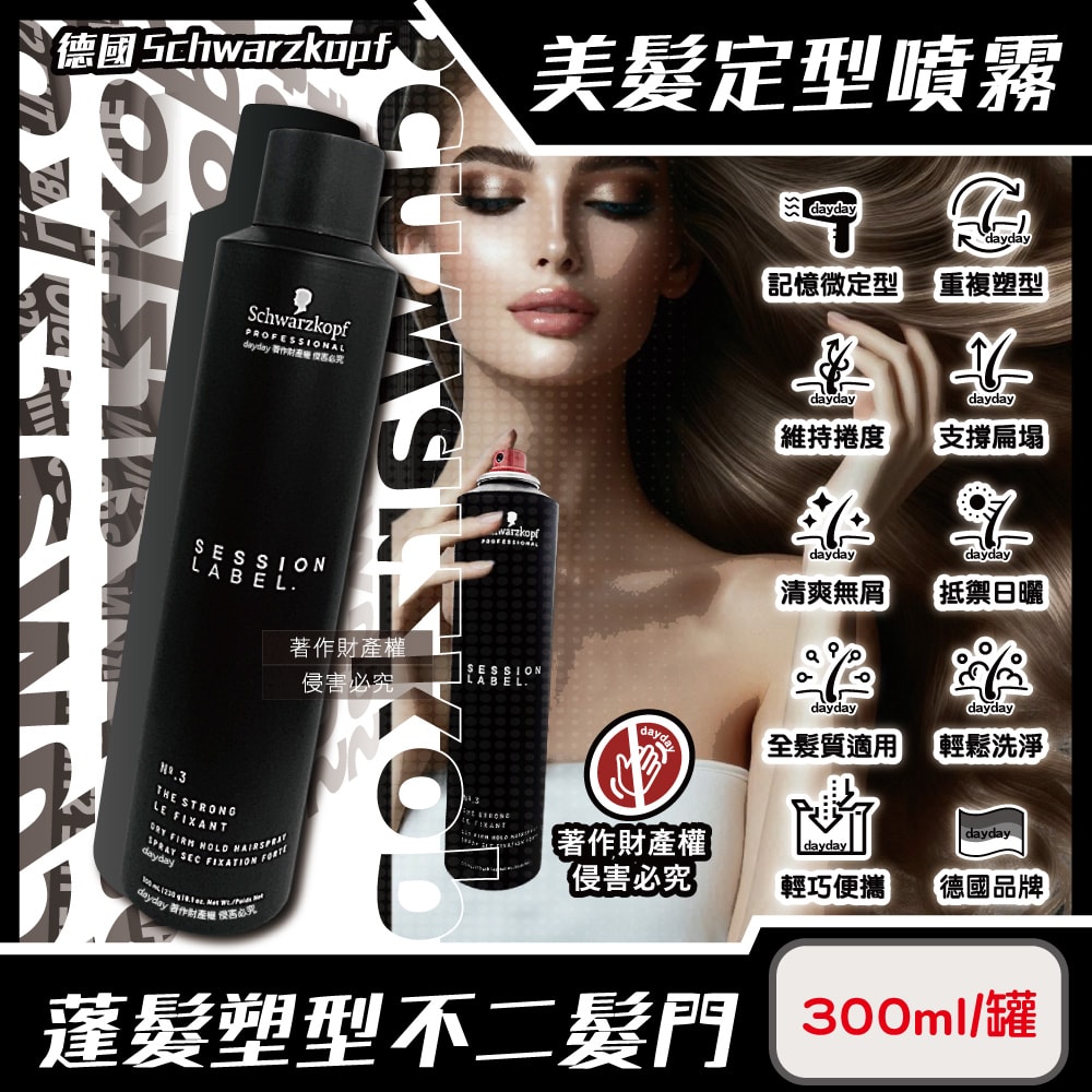 【Schwarzkopf 施華蔻】 黑魔髮記憶塑型蓬鬆空氣感持久美髮定型噴霧-3號300ml/黑罐(黑颶風專業沙龍,扁塌髮救星,耐汗造型髮膠,防熱防曬護髮液)