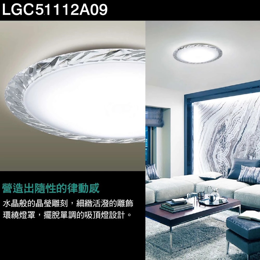 【Panasonic 國際牌】 LED吸頂燈 可調光調色 LGC51112A09(晶瑩) 水晶晶瑩/ 附遙控 適用7坪