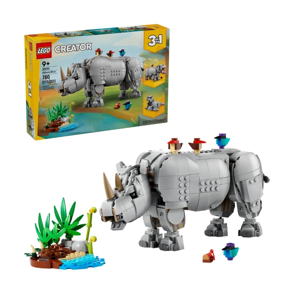 】 磚星球〡 31171 創意三合一系列 野生動物 雄壯犀牛和小鳥 Wild Animals: Majestic Rhino with Birds