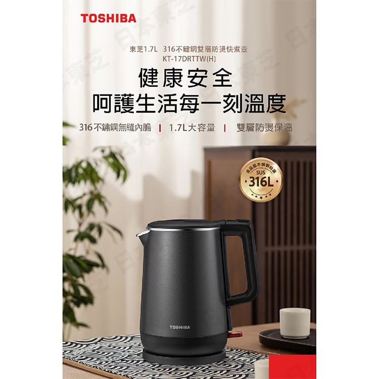 【TOSHIBA 東芝】1.7L 316不銹鋼雙層防燙快煮壺(KT-17DRTTW(H))