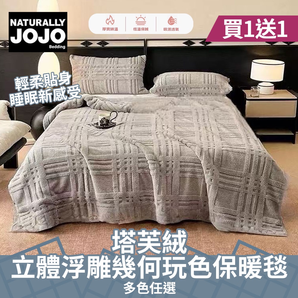【NATURALLY JOJO】 買1送1 塔芙絨立體浮雕幾何玩色保暖毯(素色/多功能毯/毛毯/保暖毯/塔芙絨毯)