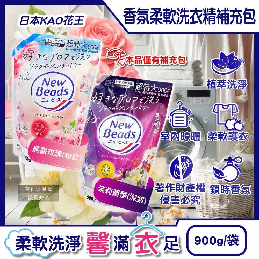 ●品名:New Beads植萃香氛精華消臭潔淨柔軟洗衣精補充包